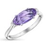 This ring for her showcases an oval-cut amethyst set east-west on a delicate sterling silver band with diamond accents on both ends for extra brilliance.